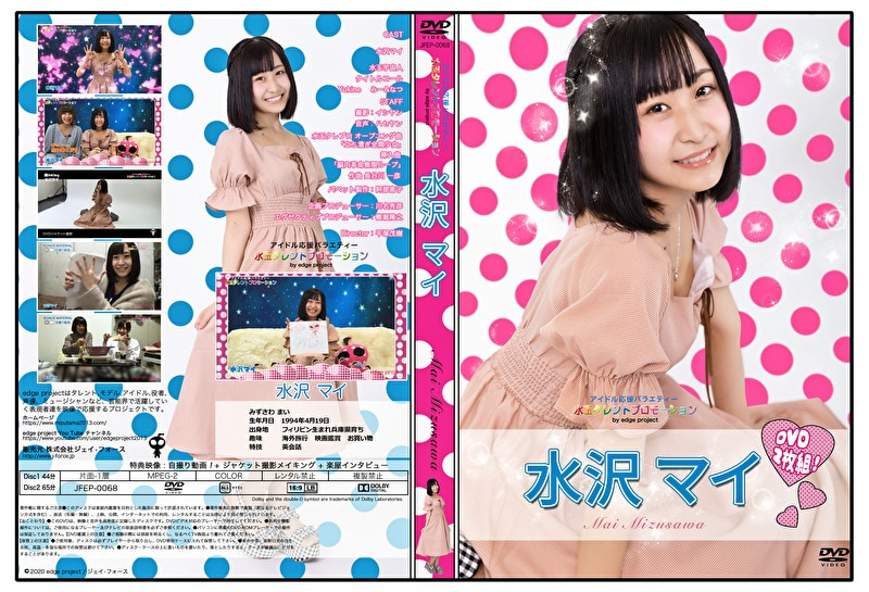 「edgeproject」68作目のアイドルは、マイマイこと水沢マイちゃん。本編、水玉宇宙人とのトークでは、ニコニコ笑顔の絶えないマイちゃんに「お風呂に入ったらどこから洗うか?」と意地悪な質問を浴びせ、マイちゃんをタジタジに・・・。特典映像の「アイドルにビデオカメラを渡したらこうなった・・・」では、マイちゃんからのコメント・・・「一番の見どころは、一緒にDVDを発売する柿ちゃん家に初めてお邪魔して初鍋したこと。今年の抱負、やりたい事など色白お話してます」1994年4月19日フィリピン生まれ兵庫県育ち / 水玉タレントプロモーション 水沢マイ